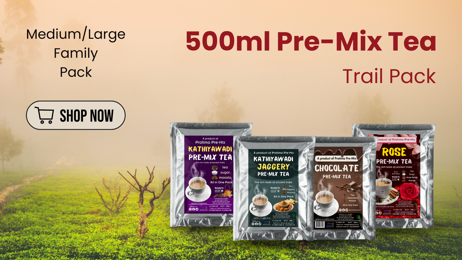 At Pratima Pre-Mix, we bring you the essence of Kathiyawadi hospitality in every cup. Our products are made from premium Assam tea, natural jaggery, and handpicked spices — perfectly blended for the original Gujarati flavor.