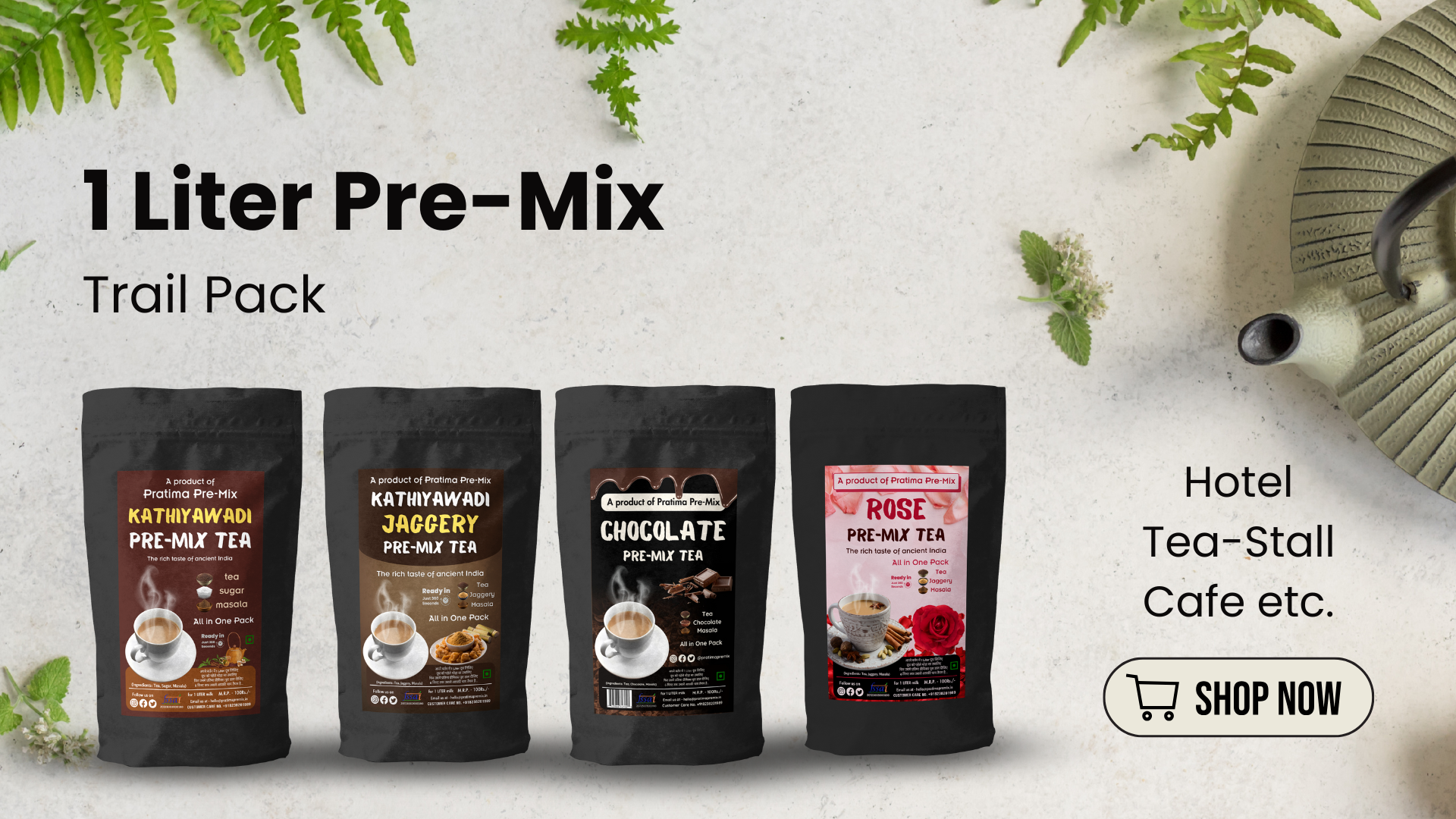 At Pratima Pre-Mix, we bring you the essence of Kathiyawadi hospitality in every cup. Our products are made from premium Assam tea, natural jaggery, and handpicked spices — perfectly blended for the original Gujarati flavor.